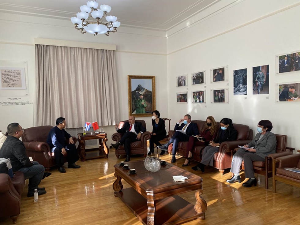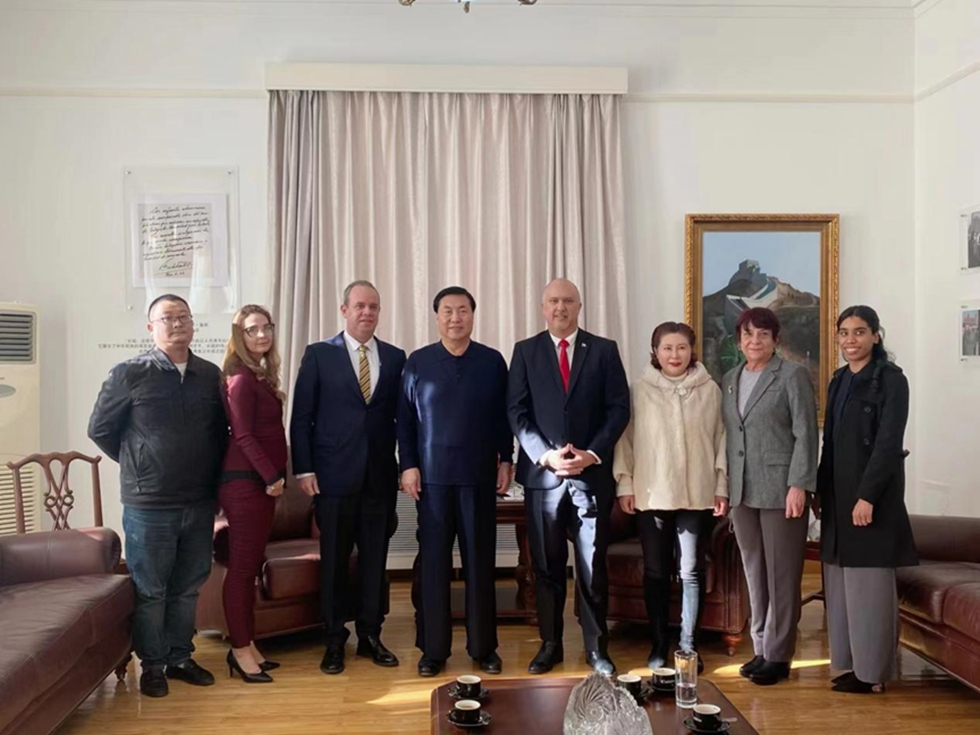 2022年12月30日,河北外国语学院董事长、校长孙建忠院士率团访问古巴驻华大使馆,与古巴驻华特命全权大使佩雷拉进行会晤。