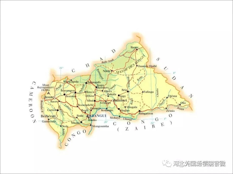 中非有8个国家涉及法语、阿拉伯语、桑戈语、西班牙语、英语、葡萄牙语6种语言,河北外国语学院语种已覆盖中非8国。