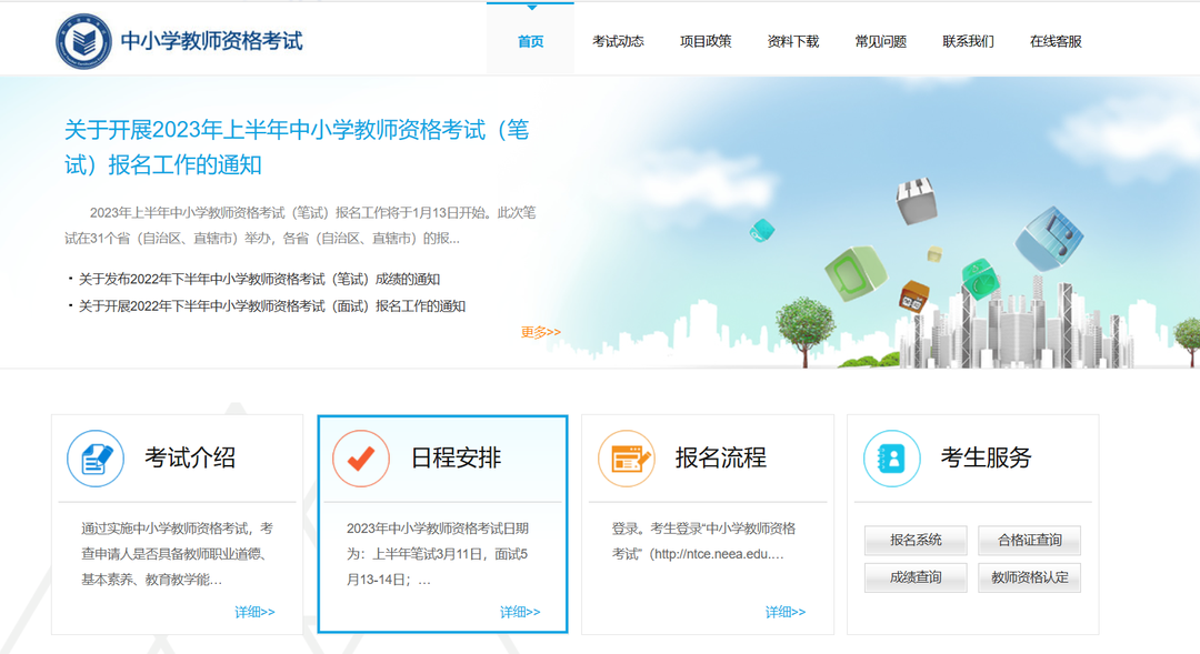 (一)2023年1月13日9:00至16日17:00,考生登录中小学教师资格考试网站(http://ntce.neea.edu.cn)进行报名。