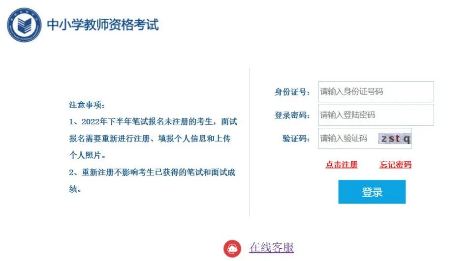 2023年1月12日9:00至16日17:00,考生登录中小学教师资格考试网站(http://ntce.neea.edu.cn)进行注册。所有考生(含以前参加过中小学教师资格考试的考生)报名时均需注册,已参加过中小学教师资格考试的考生注册操作不影响已获得的成绩。考生注册须填写真实姓名、证件类型及证件号码,注册信息必须与证件信息一致。每个手机号只能注册一次,注册时需要接收短信验证,核验考生手机号码。