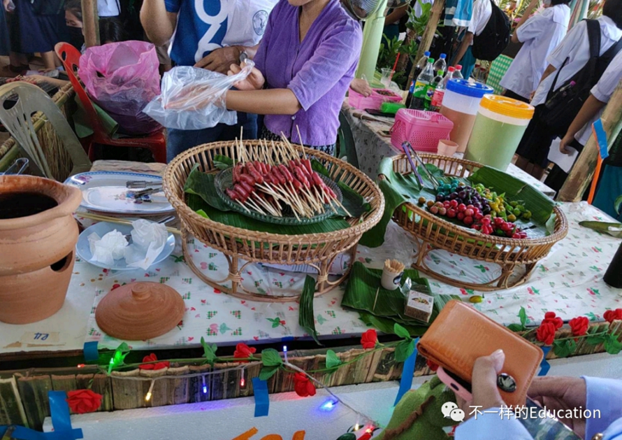 每年的7月29日,是泰语国家日。这天,所有人穿着泰服,参加学校举行的隆重仪式,之后学生们自发的在学校大会堂摆摊,卖各种小吃。郑华琦受邀参与此次活动,她在传授中文的同时品味到泰国各色美食,体验到了泰国的文化习俗。