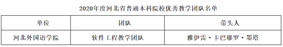 由雅伊雷院士带头的软件工程教学团队荣获2020年度河北省普通本科院校优秀教学团队。