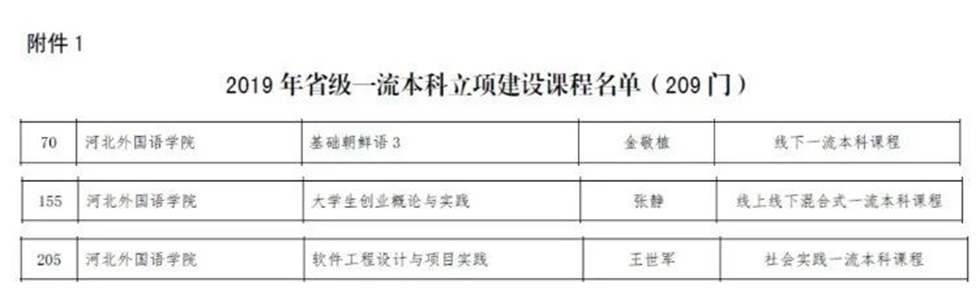 河北外国语学院《软件工程设计与项目实践》课程获批省级一流本科课程。