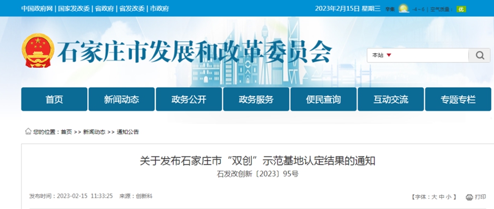2月15日,石家庄市发展和改革委员会发布《关于发布石家庄市“双创”示范基地认定结果的通知》,经各县(市、区)主管部门推荐、实地考查、专家评审、综合审查,确定河北外国语学院为2022年市级“双创”示范基地。