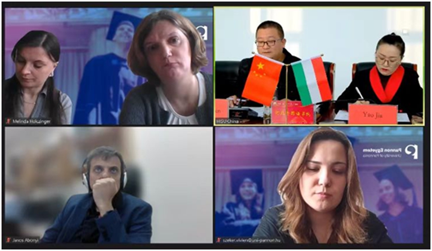 2023年3月20日,春风和煦,阳光明媚,河北外国语学院与匈牙利潘诺尼亚大学国际高端合作视频对接会成功举办。河北外国语学院参会的人员有:校长外事助理、副校长杨振博士,航空旅游学院院长姚佳、科学技术处处长尹霞,校长外事助理干事周海平,航空旅游学院旅游管理学院三级院长刘继华,航空旅游学院英语教师李亚梅。匈牙利潘诺尼亚大学参会人员有:匈牙利潘诺尼亚大学副校长亚诺什教授,匈牙利潘诺尼亚大学国际处处长薇薇安博士,匈牙利潘诺尼亚大学瑙吉考尼饶分校校长兼循环经济中心主任尼科莱塔博士,匈牙利潘诺尼亚大学瑙吉考尼饶分校国际办公室高级职员梅琳达教授。