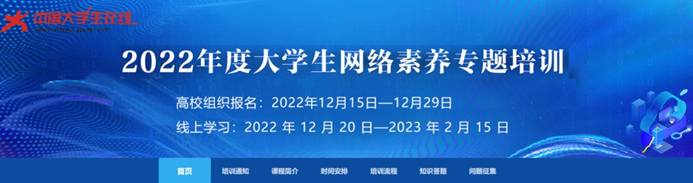 为深入学习宣传贯彻党的二十大精神,深入学习贯彻习近平总书记关于网络文明建设的重要论述,落实立德树人根本任务,引导大学生进一步弘扬时代新风、共建网络文明,不断提升其安全用网、善于用网、文明上网能力素养,中国大学生在线特开展2022年度大学生网络素养专题培训。