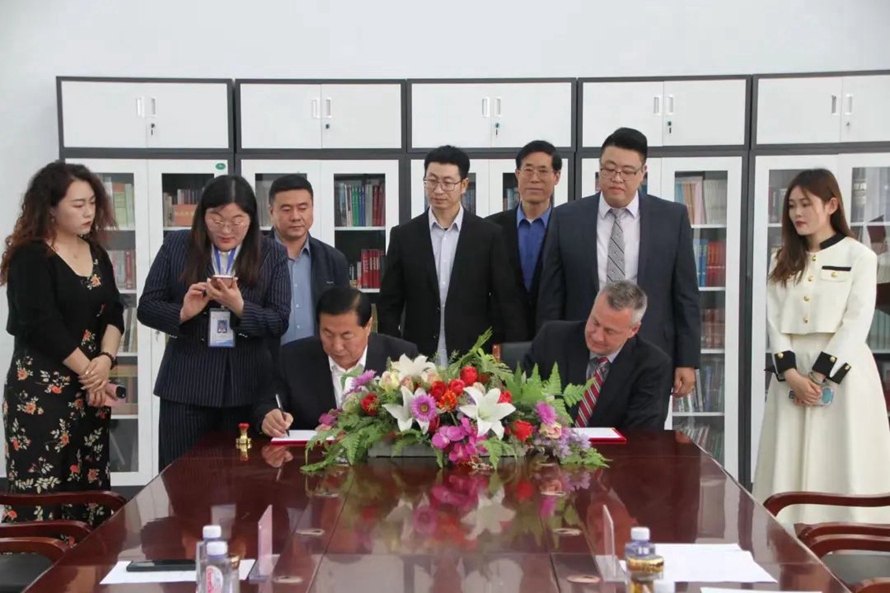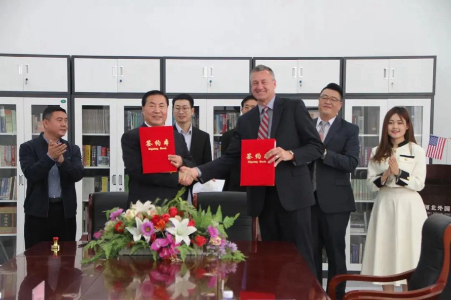 宣讲结束之后,河北外国语学院董事长、校长孙建忠院士与美国哈町大学Dr. Collins副校长正式签署3+1本升硕项目的合作协议。