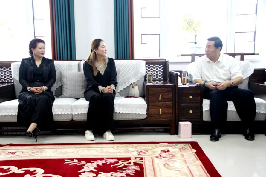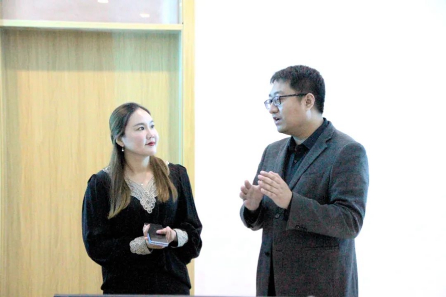 河北外国语学院董事长、校长孙建忠院士亲切接见以岭健康科技有限公司捐赠团。河北外国语学院副董事长、执行校长,河北省圣兰慈善基金会理事长习伟教授接受捐赠。