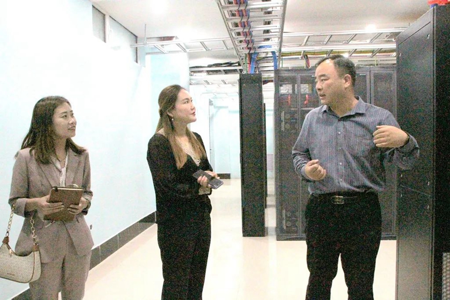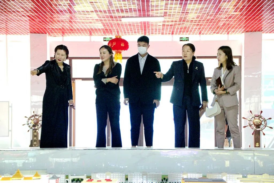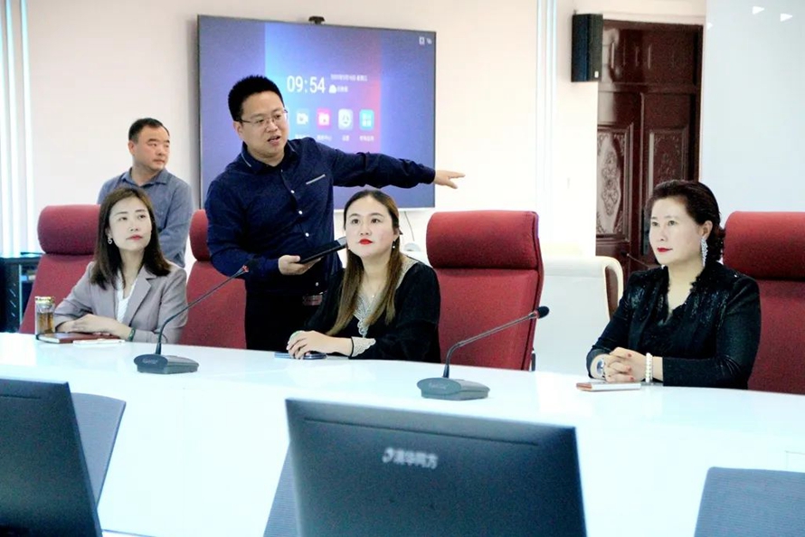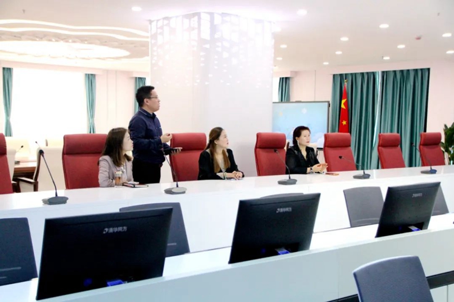 在习伟教授的带领与陪同下,捐赠团一行参观了河北外国语学院智慧大脑、大数据中心、党政领导决策舱、新校区沙盘等。