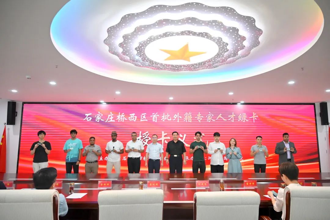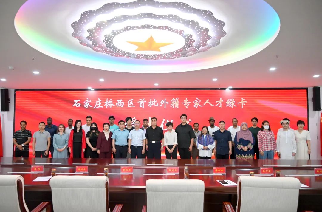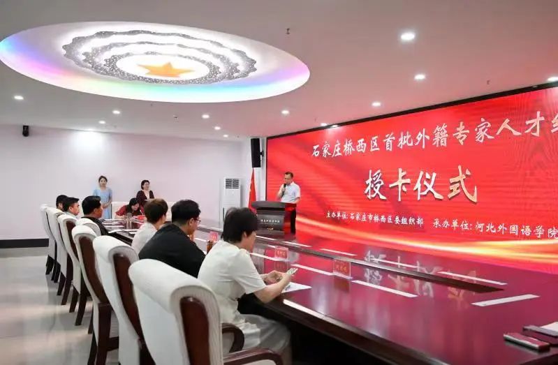 石家庄市在2017年构建了人才绿卡政策体系,为来石创业就业的青年人才、专家学者提供各项优惠政策。为更好的帮助外籍专家了解绿卡享受待遇、绿卡使用政策,2023年6月6日上午,石家庄市桥西区首批外籍专家人才绿卡授卡仪式在河北外国语学院隆重举行,石家庄市桥西区委组织部曹纪周部长、人才工作主管副部长李林涛同志及相关负责同志出席仪式。