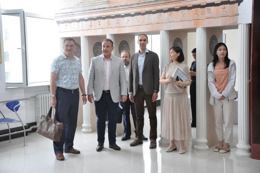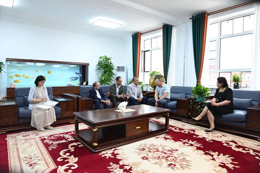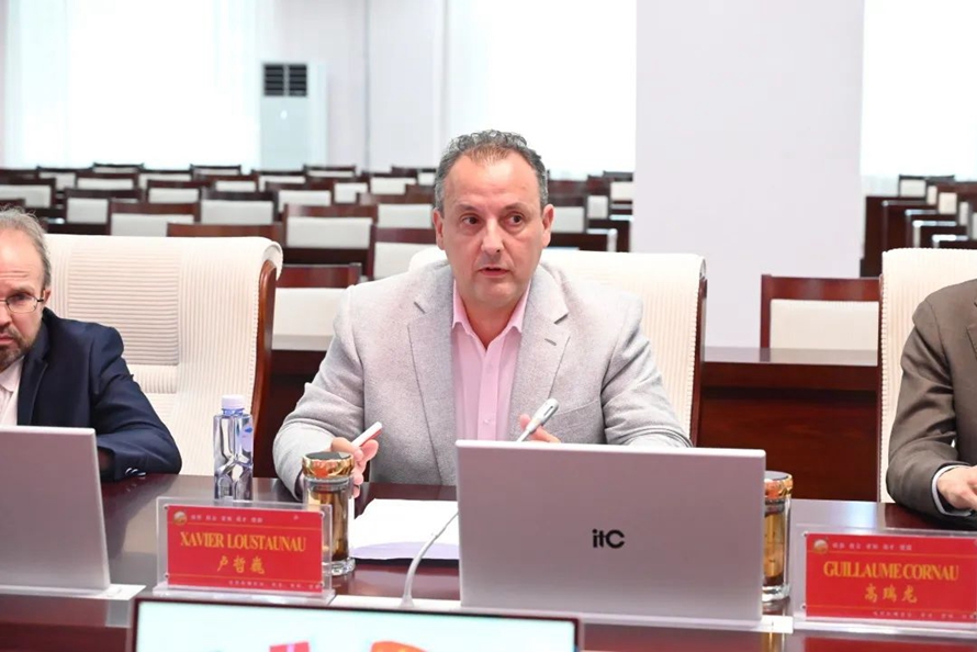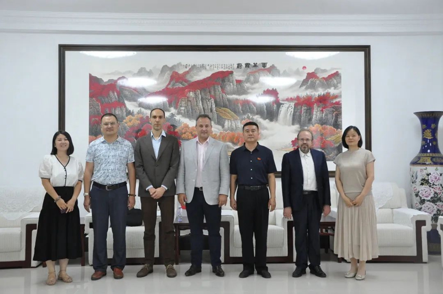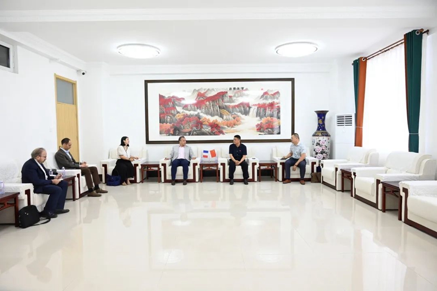 2023年6月19日下午,法国驻华大使馆教育合作专员Xavier Loustaunau(卢哲巍)先生、法国驻华大使馆中国中法中学双语项目网络教学主任Guillaume Cornau(高瑞龙)先生、法国驻华大使馆教师培训负责人Didier Hetet(文迪)先生、法国驻华大使馆高等教育署李颖女士等一行4人访问河北外国语学院。学校副董事长、执行校长习伟教授,副校长、国际合作与交流处处长陈伟,德法语言学院行政院长吴艳丽,德法语言学院业务院长王利峰等接见来宾。