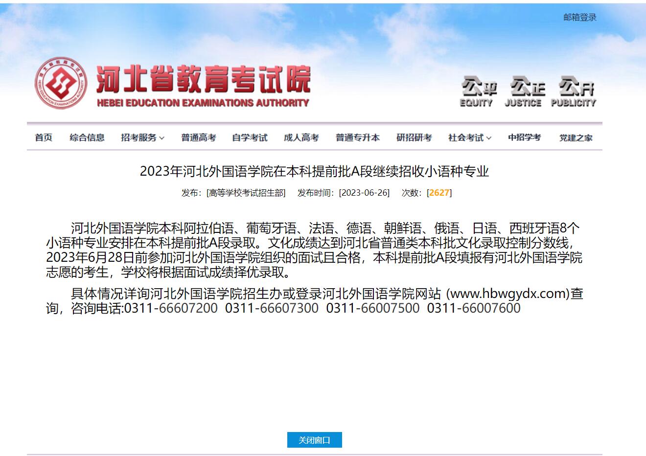 上一信息:2023年,河北外国语学院在河北省各批次招生专业报考代码