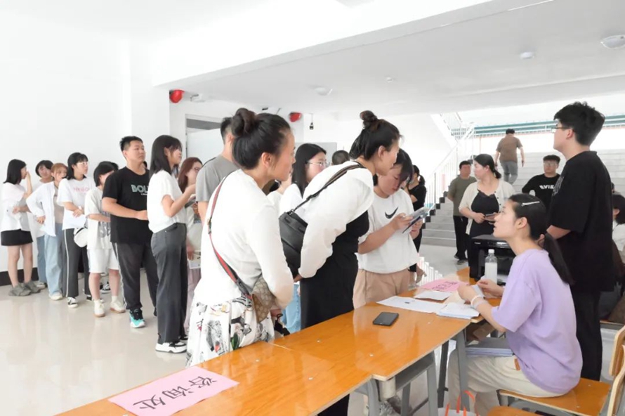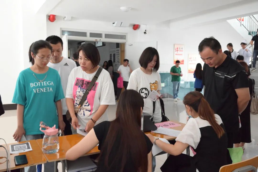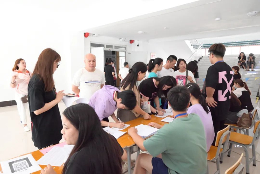 6月26日上午8点半,河北外国语学院八号实训楼一楼大厅就有序排起了长队,原来是河北各地的高考生来河北外国语学院参加小语种本科提前批面试啦!集中面试第二天,虽然室外艳阳高照,但是丝毫阻挡不了考生参加面试的热情。