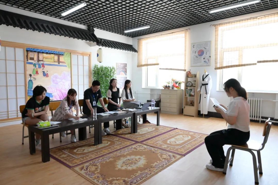 一位身着浅米色长裙的家长表示:“我家孩子喜欢韩语,平时英语考试成绩不错,老师都说她有语言天赋,我有个朋友,他家孩子就在河北外国语学院学的朝鲜语,现在已经去新罗大学留学了,我也想让孩子出去见见世面,就带她来面试一下,希望孩子能走个本科院校,将来能出国深造。”