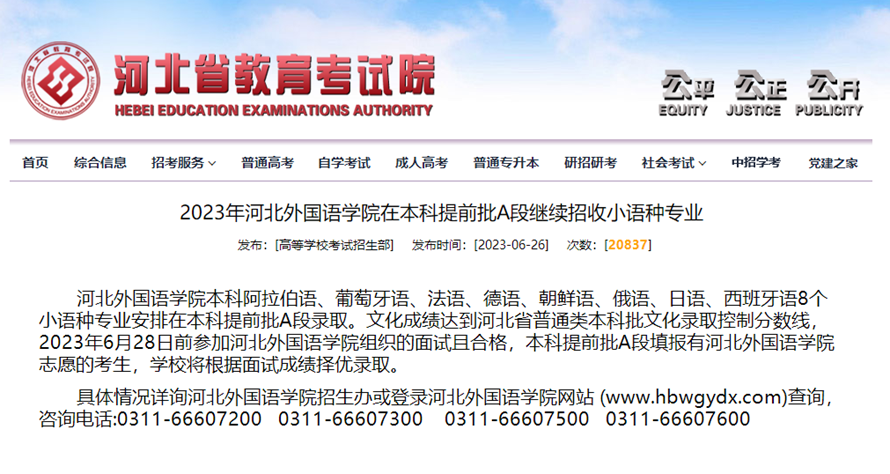 ②参加河北外国语学院组织的小语种面试且成绩合格。
