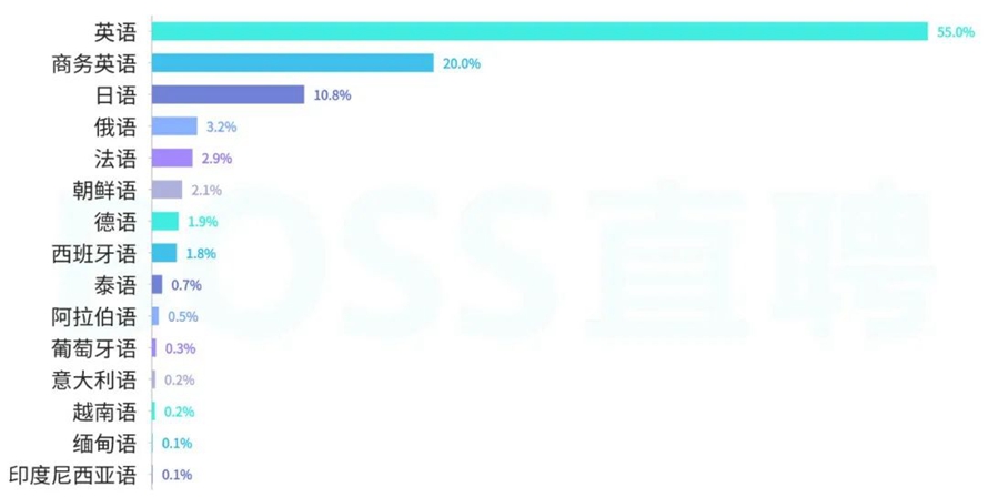 根据BOSS直聘的研究,2022年,除了英语之外,毕业人数相对比较多的是日语、俄语、法语、朝鲜语(韩国语)。