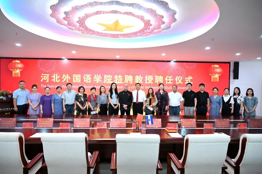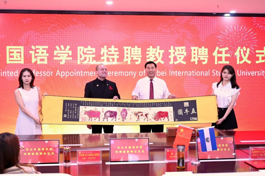 2023年7月7日,萨尔瓦多共和国驻华特命全权大使阿尔多·阿尔瓦雷斯教授访问河北外国语学院,并受聘为河北外国语学院特聘教授。