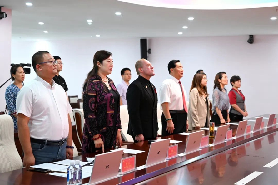 上午11时,聘任仪式在河北外国语学院大中华楼五楼智慧会议室举行,出席会议的领导有萨尔瓦多共和国驻华特命全权大使阿尔多·阿尔瓦雷斯教授,河北外国语学院董事长、校长孙建忠院士,副董事长、执行校长习伟教授,萨尔瓦多共和国驻华大使馆文化和学术事务参赞宝拉·卡巴列罗女士,萨尔瓦多驻华大使馆大使秘书、翻译刘璇女士,河北外国语学院党委副书记李莉,副校长陈乐音,校长外事助理、副校长杨振博士。学校各处处长、二级学院行政院长和业务院长、三级学院院长、年级组组长见证聘任全程。会议由学校国际处闫珍珍主持,校长外事助理、副校长杨振博士全程作西班牙语主持和翻译工作。