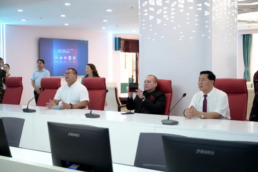 在观看了河北外国语学院介绍短片及萨尔瓦多共和国介绍短片后,河北外国语学院董事长、校长孙建忠院士致辞。