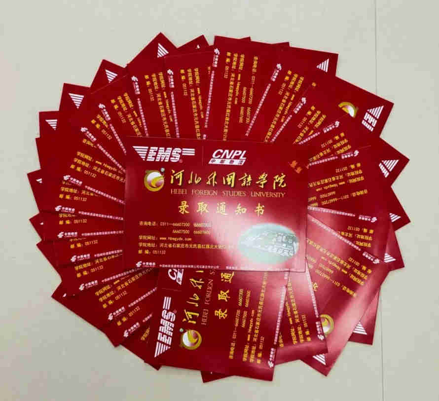 专科批、专科提前批录取通知书将于录取结束后安排发放,具体邮寄时间请关注河北外国语学院官微、河北外国语学院官网。