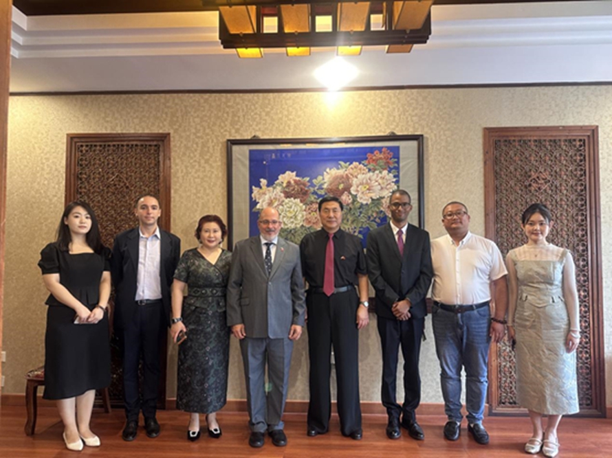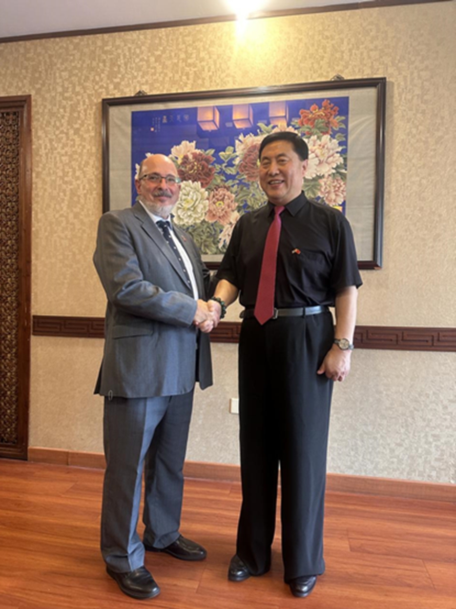 2023年8月10日,河北外国语学院董事长、校长孙建忠院士率团在北京与新任古巴驻华大使白诗德会晤,新任古巴驻华特命全权大使白诗德与河北外国语学院孙建忠校长一见如故并相拥问候。