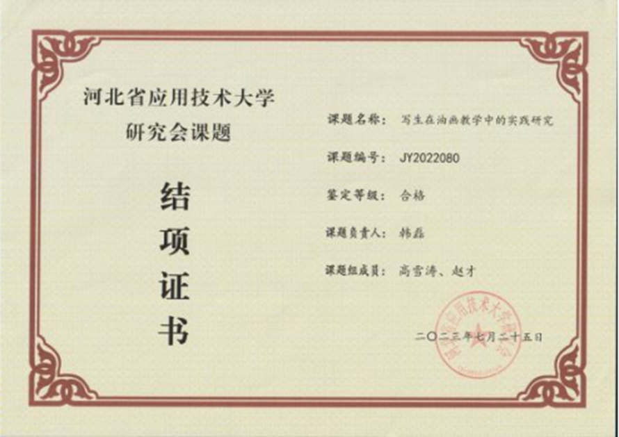 由传媒学院韩磊老师主持的课题《写生在油画教学中的实践研究》(立项编号:JY2022080)