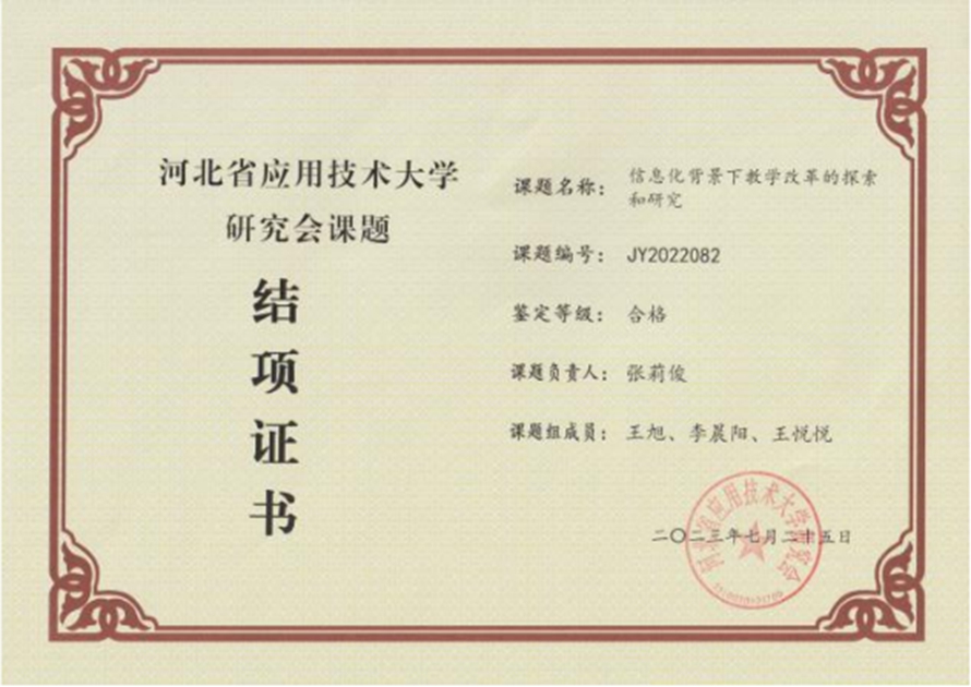 由国际金融学院张莉俊老师主持的课题《信息化背景下教学改革的探索和研究》(立项编号:JY2022082)