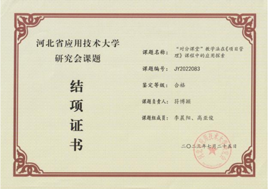 由国际金融学院符博颖老师主持的课题《“对分课堂”教学法在《项目管理》课程中的应用探索》(立项编号:JY2022083)