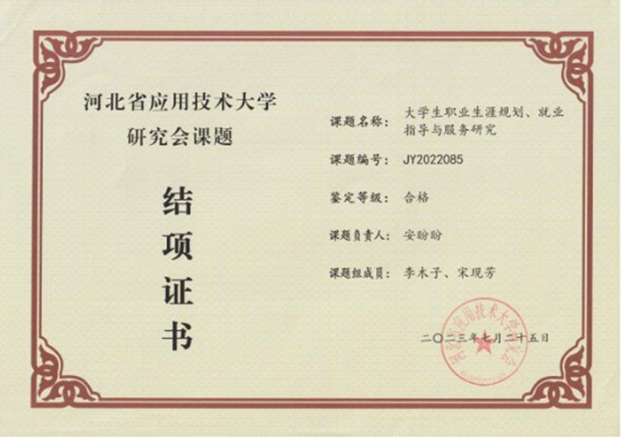 由教师教育学院安盼盼老师主持的课题《大学生职业生涯规划就业指导与服务研究》(立项编号:JY2022085)