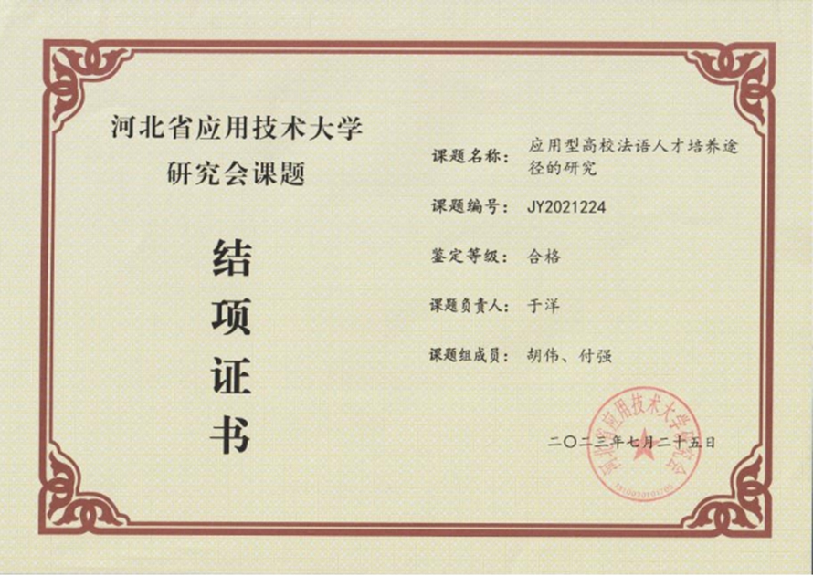 由德法语言学院于洋老师主持的课题《应用型高校法语人才培养途径的研究》(立项编号:JY2021224)