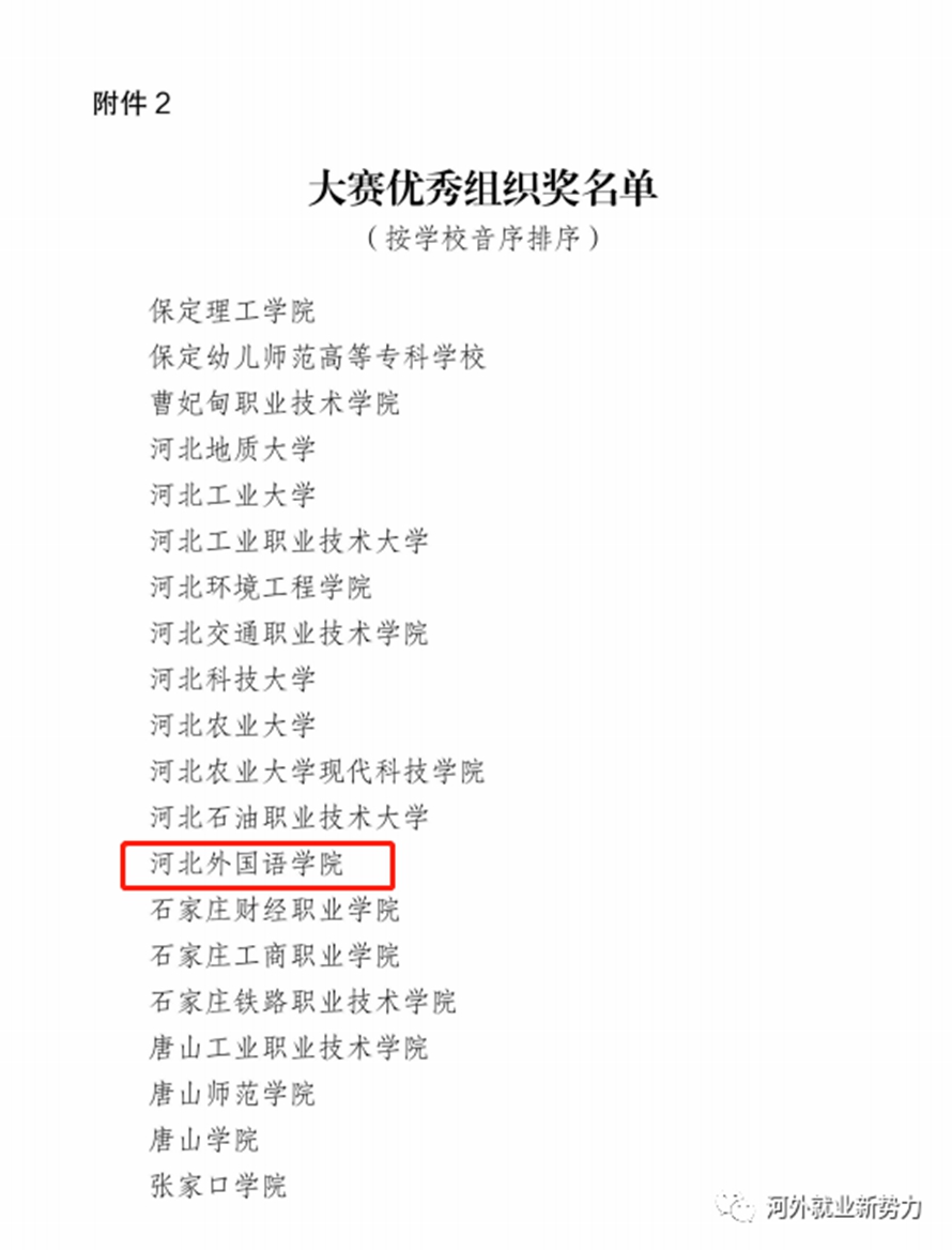 近日,河北省教育厅公布了“2022年河北省本科院校学生劳动技能竞赛”获奖名单,河北外国语学院24名同学斩获23项大奖。