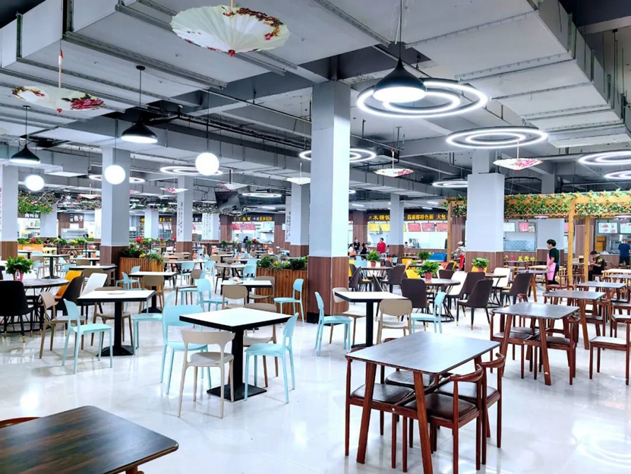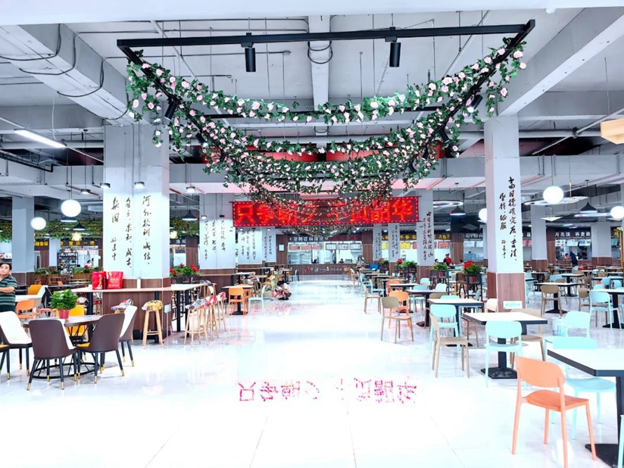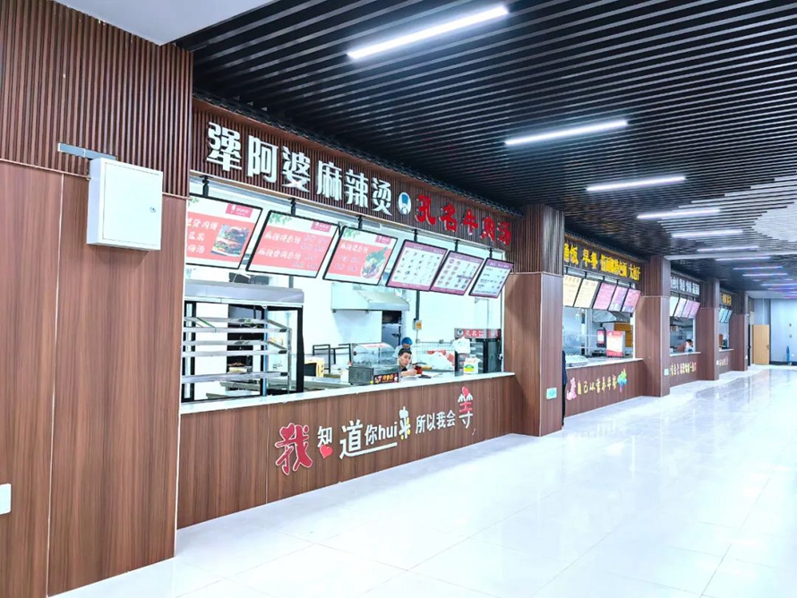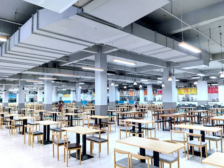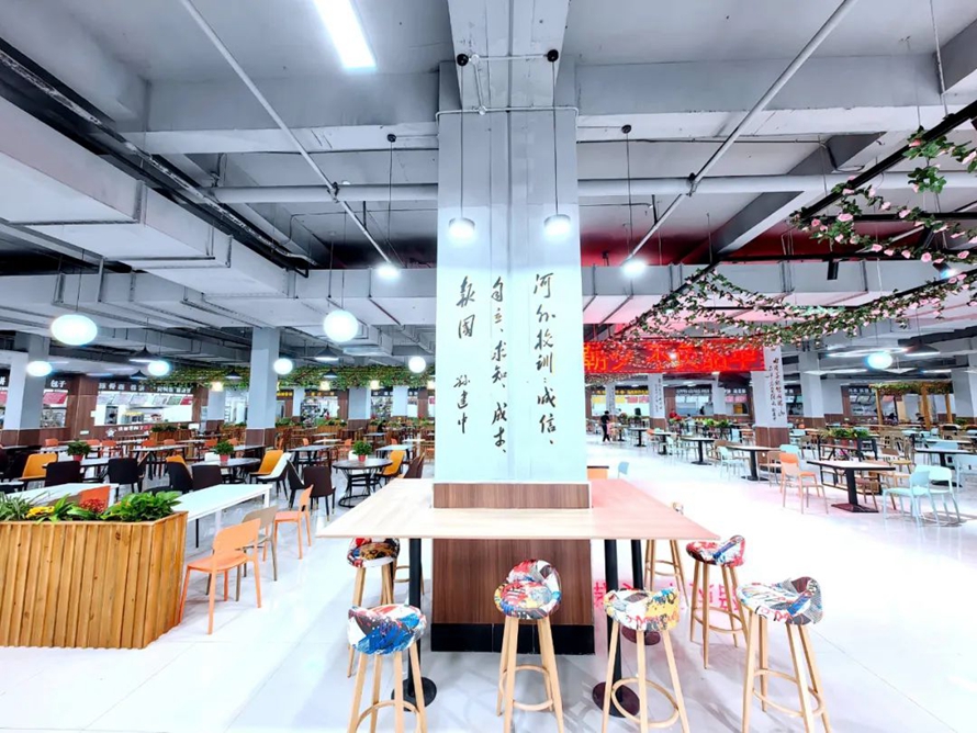 餐厅内设有价格高中低三档就餐窗口,菜品种类多,汇聚天南地北的特色美食、品牌美食,就餐环境好,可满足上万名同学同时就餐。