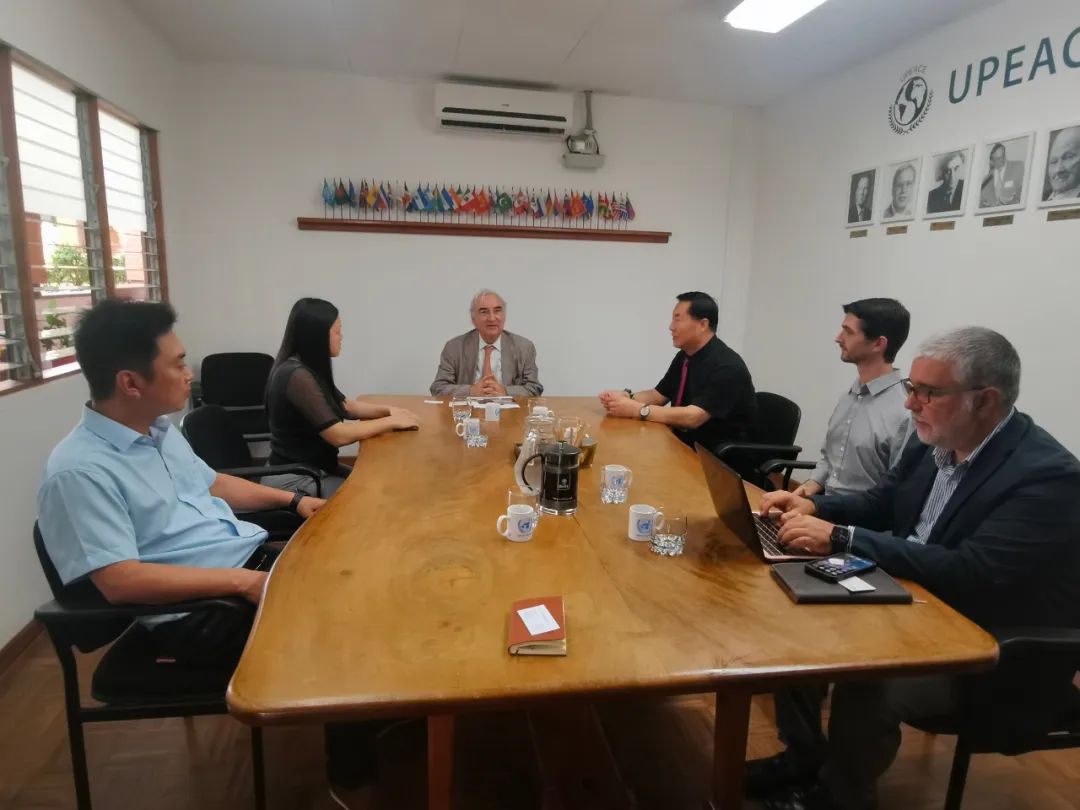 2023年8月,由河北外国语学院董事长、校长孙建忠院士,副董事长、执行校长习伟教授,校长外事助理、副校长杨振博士组成的代表团,开展的为期15天的拉丁美洲和加勒比国家国际交流访问行程,第三站来到了位于哥斯达黎加的联合国和平大学(总部)。