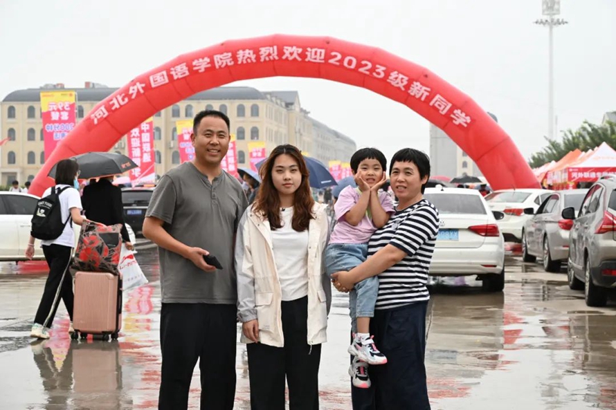 9月9日,天空飘着小雨,天气凉爽,河北外国语学院2023级专科新生开学报到,本科新生持续报到进行中。