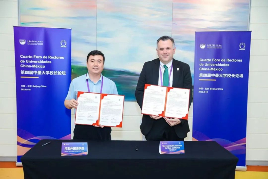 河北外国语学院副校长、国际合作与交流处处长陈伟率团参加此次中墨大学校长论坛,与17所墨西哥高校校长交流会晤,积极拓展河北外国语学院与墨西哥大学的教育交流合作。在此次论坛上,河北外国语学院与墨西哥下加州自治大学签订友好合作协议,并与多所墨方高校达成初步合作意向,丰富了学校与墨西哥高校的合作成果,深入挖掘了双方在高等教育领域的合作潜力。