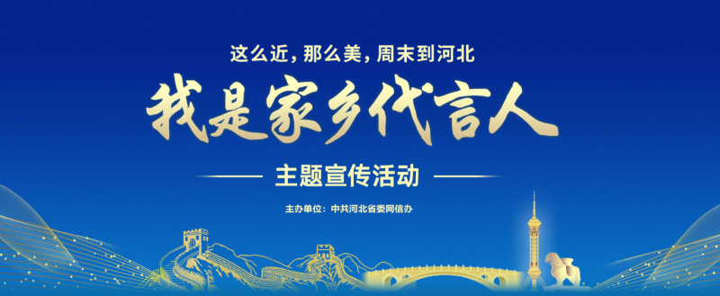 为聚焦河北发展之美、自然之美、文化之美,全方位宣传展示燕赵儿女昂首阔步新征程、团结奋斗谱新篇的奋进图景,在全网叫响“这么近,那么美,周末到河北”网络宣传品牌,特举办“这么近,那么美,周末到河北——我是家乡代言人”短视频大赛征集活动。