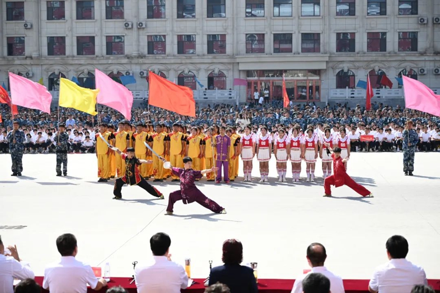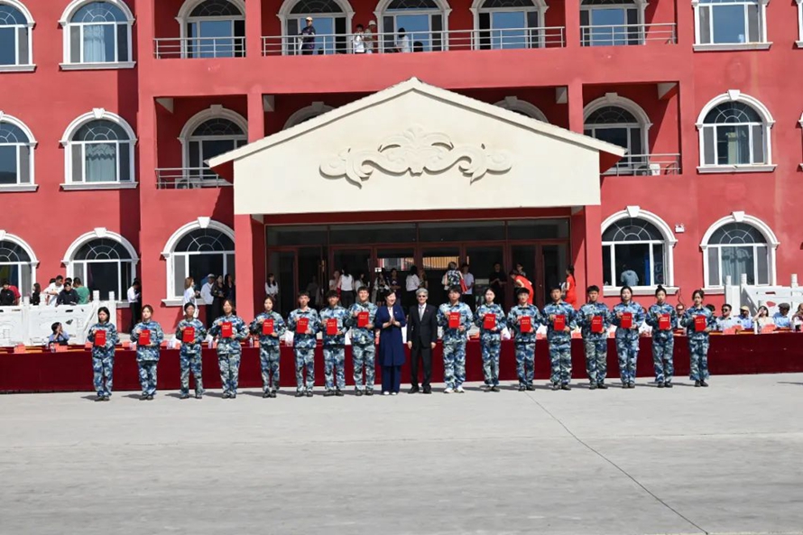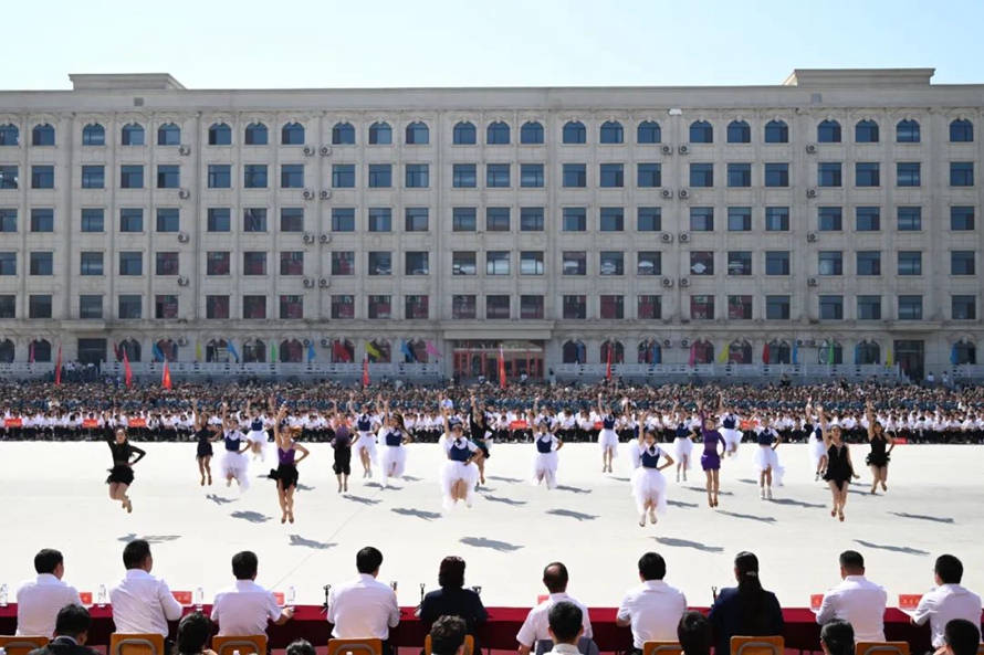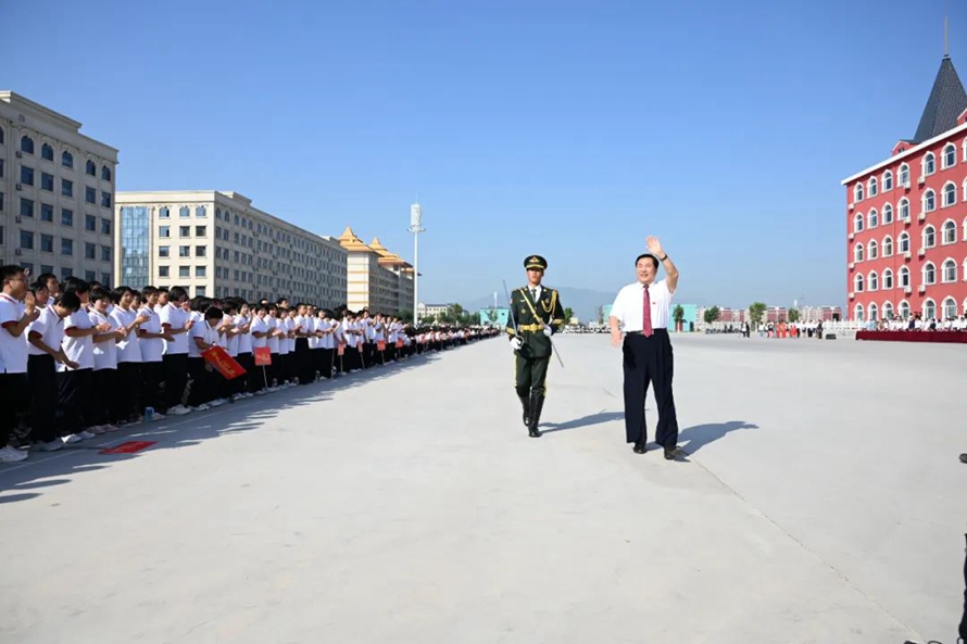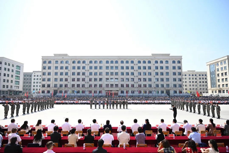 历经13天的艰苦训练,9月22日上午9时8分,随着河北外国语学院董事长、校长孙建忠院士高声宣布“开始”,2023级新生军训总结表彰大会正式拉开序幕,由8422名2023级新生组成76支方队在远东楼广场前接受检阅。整齐的步伐,嘹亮的口号,精彩纷呈的节目,同学们淬炼青春,飒爽英姿,生动展现了新时代青年的蓬勃朝气和活力,书写了斗志昂扬的青春篇章。
