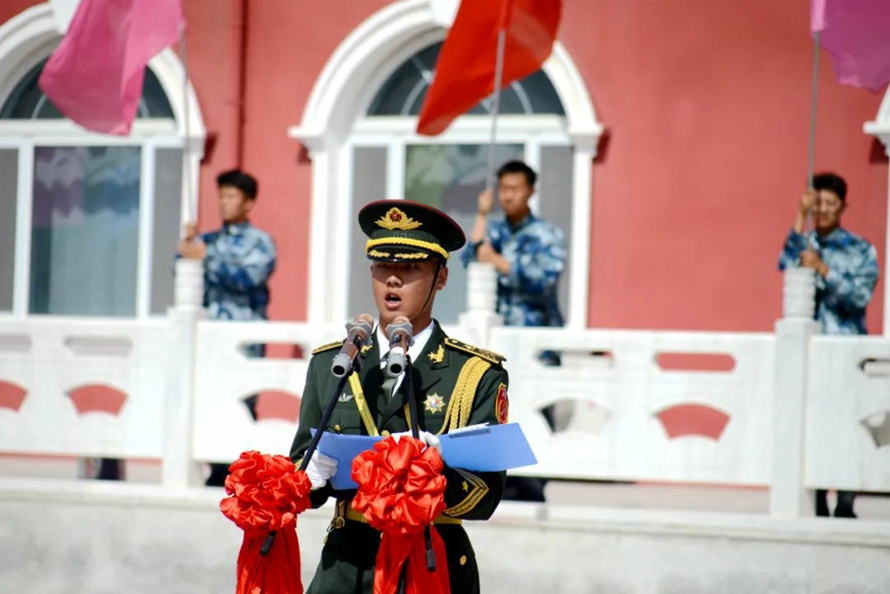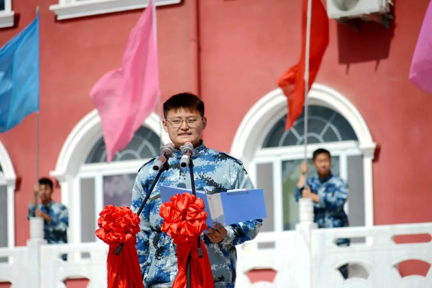 国旗护卫队总教官杜博涵作为军训教官代表发言