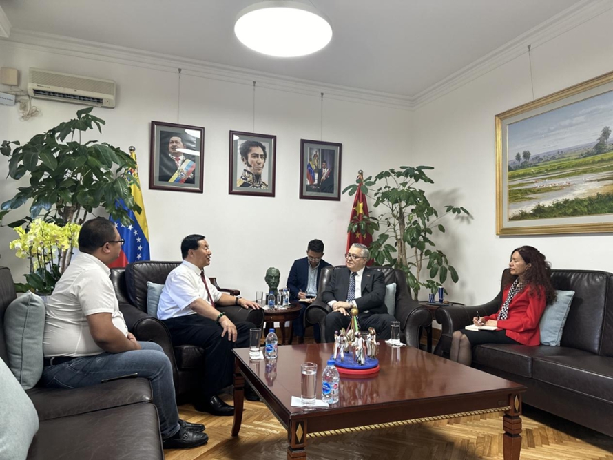 委内瑞拉驻华特命全权大使朱塞佩·约夫雷达向河北外国语学院孙校长通报了应习近平主席的邀请委内瑞拉总统马杜罗第五次访华的情况、称这是一次成功的和历史性的访问,两国关系提升到全天候战略伙伴关系。