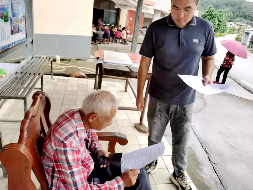 工作两周之后,杨震迎来了第一次入村工作,第一次来到了沙坪村,因为不会粤语,他只能在旁记录,那时有好几个村民代表与他们讨论,慢慢地杨震听出来了,原来是为了帮助沙坪村村民发展,根据当地自然情况,乡村振兴工作队鼓励沙坪村村民种植桉树,可是部分村民有些不理解,他们觉得一旦种植出现问题,难以找到政府负责。“我们进行了细致的解释,慢慢的,村民代表脸上的皱眉舒展了,取而代之的便是笑容。”至此沙坪村的桉树种植项目全面展开。