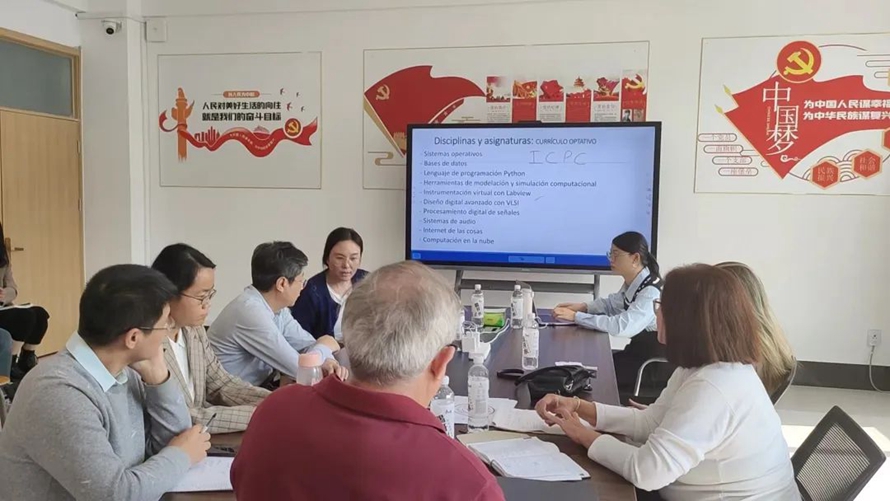 近日,河北外国语学院计算机学院邀请古巴专家在七号实训楼424室进行了为期四天的专业座谈论证会,双方就数据科学与大数据技术专业、人工智能专业、软件工程(电子科技技术)专业、物联网工业(物联网技术)专业、网络工程(通讯网络)专业、区块链工程专业进行深度研讨。