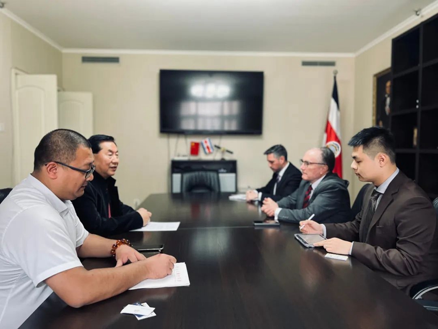 哥斯达黎加共和国驻华大使阿尔弗雷多·奥尔图诺向河北外国语学院董事长、校长孙建忠院士率团来访表示热烈欢迎,哥斯达黎加驻华使馆高度重视河北外国语学院与哥斯达黎加高等教育合作,愿意全力支持双方合作项目落地。