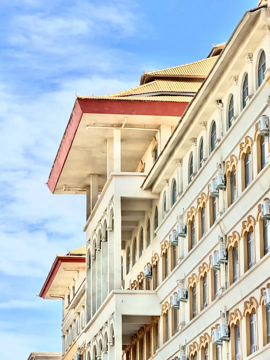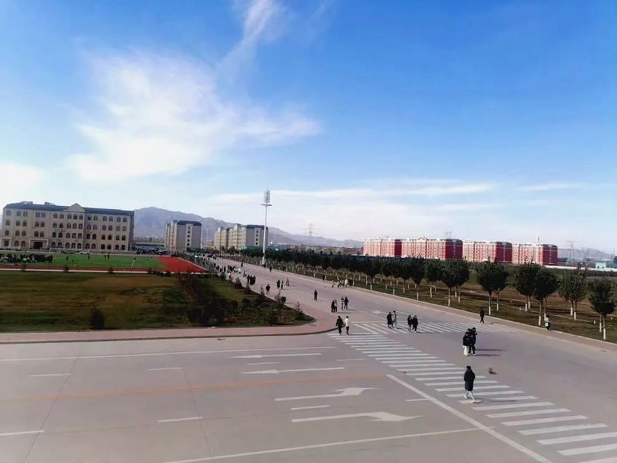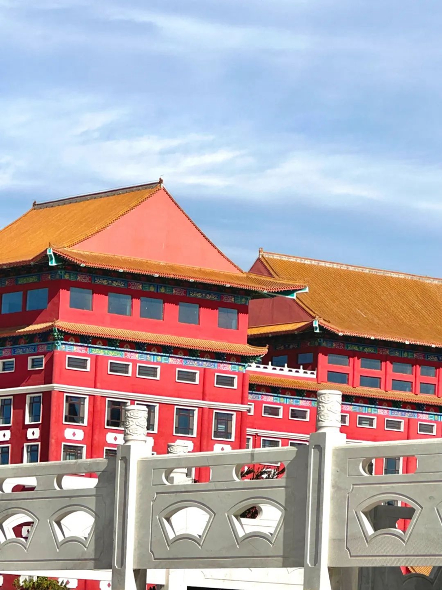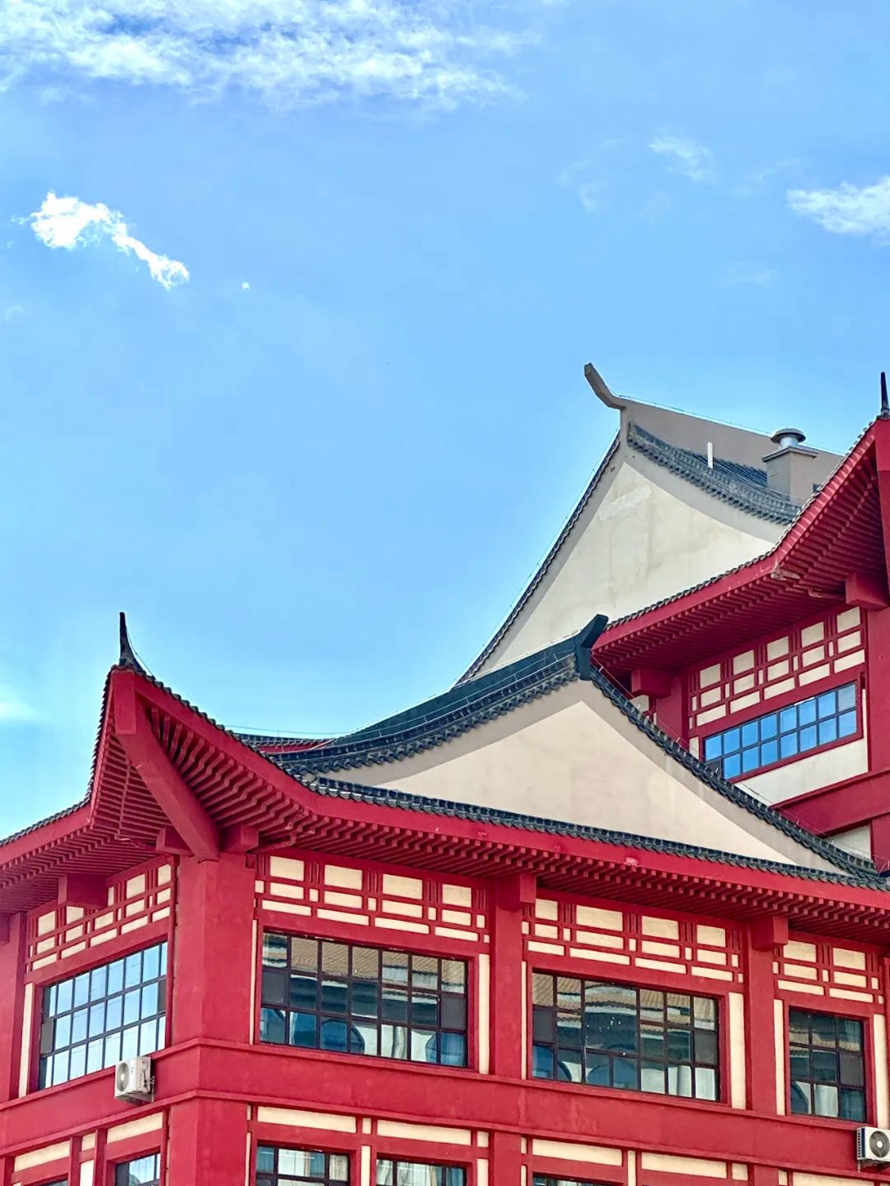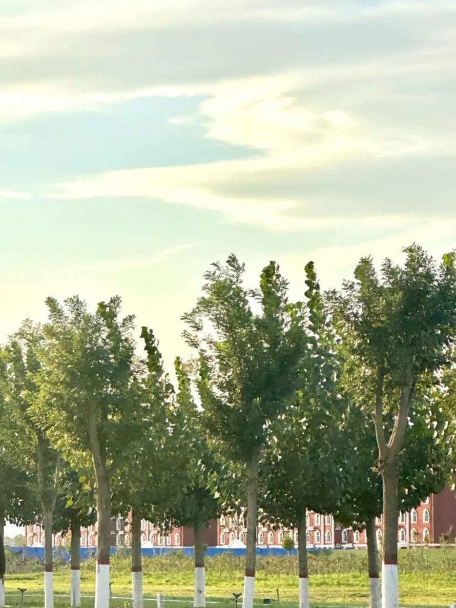 蓝天白云下河北外国语学院,给人带来一种宁静和谐的感觉。在校园里,你可以看到天空的颜色和云彩的形状,与校园的建筑、花草树木等元素相互映衬,形成一幅美丽的画卷。