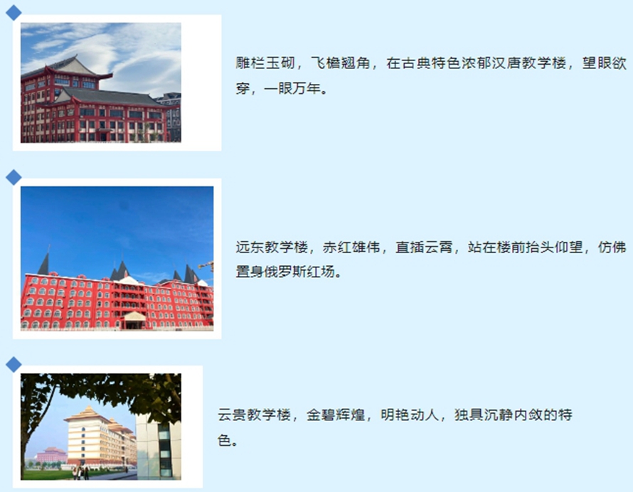 校园内的建筑呈现出一种更加瑰丽壮美的姿态