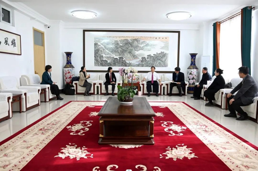 2023年12月6日,日本神户电子专门学校校长福岡壯治,国际处专员周也勤一行2人来访河北外国语学院,学校董事长、校长孙建忠院士热情欢迎福岡壯治校长一行,副董事长、执行校长习伟,副校长陈伟,日语学院行政院长张桉菂、执行院长赵腾,河北外国语学院附属中学副校长赵彩晓等领导陪同会见外宾。