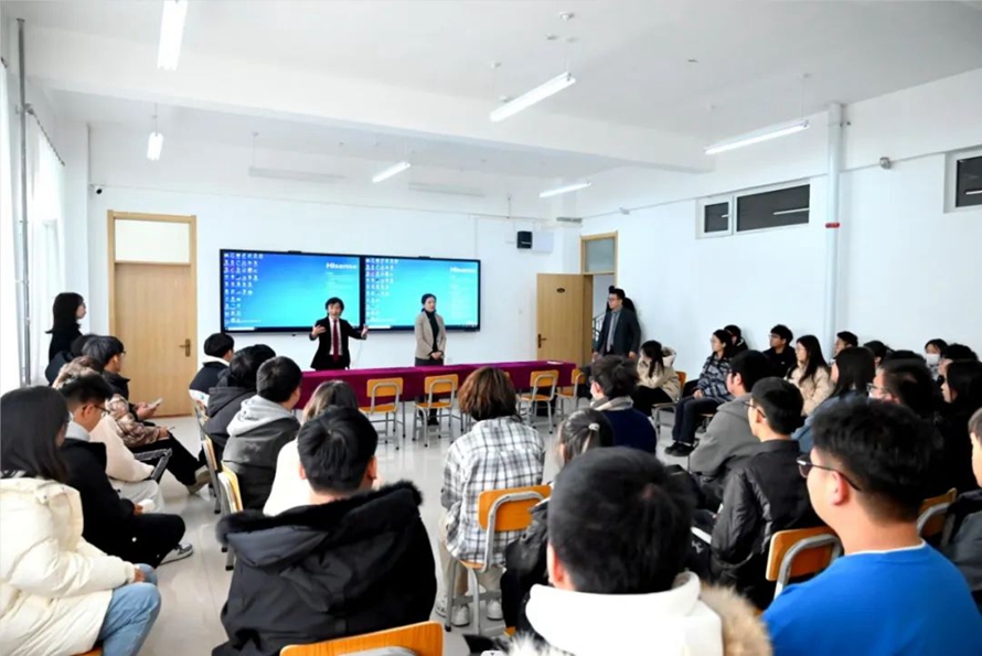 下午,日本神户电子专门学校福岡校长和周也琴老师为河北外国语学院附属中学及河北外国语学院日语专业、动漫专业的师生详细介绍了日本神户电子专门学校的基本情况、专业设置等。学生们兴趣满满,现场互动热烈。