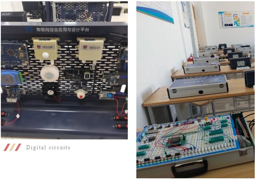 数字电路实训室不仅包括基础性实验,还增加了综合、设计性实验,实习、设计课题。实训室通过让同学们亲自搭建电路,使学生加深对课程理论的理解,培养同学们联系实际的动手实践能力。