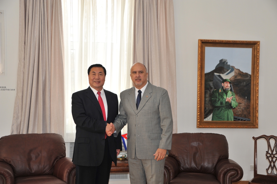 河北外国语学院董事长、校长孙建忠院士率团在北京与新任古巴驻华大使白诗德会见交流,大使先生高度评价河北外国语学院的发展成就,希望河北外国语学院与古巴的合作越来越好,为增进中古友谊贡献力量。