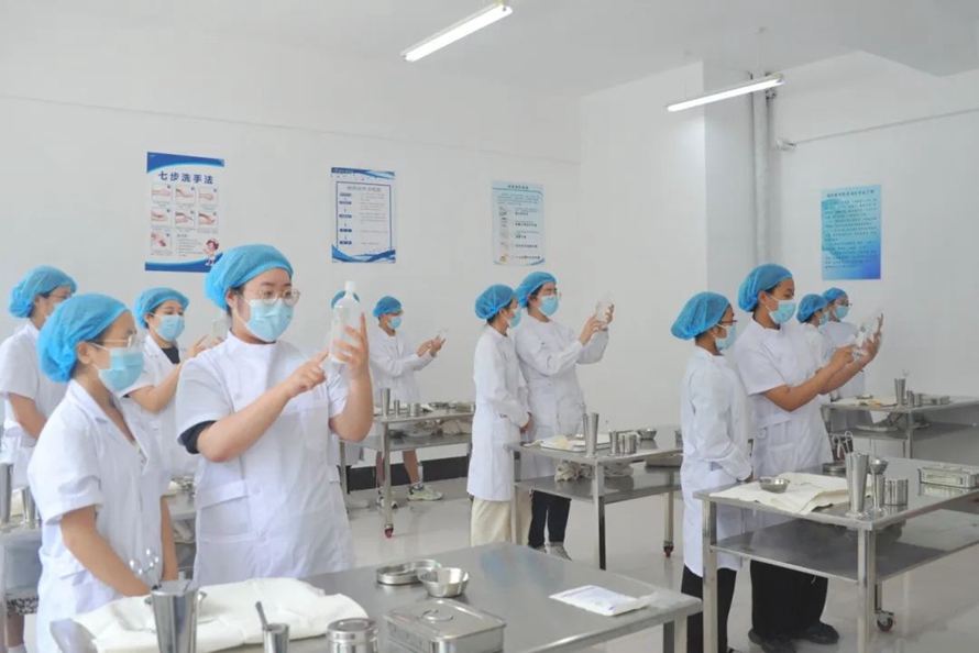 河北外国语学院护理专业以“学专业里的外语,办行业里的专业”为指导思想,本着“在做中学,在学中做”的教学理念,注重培养和训练学生的听外语、说基本技能、外语思维及护理操作等技能。