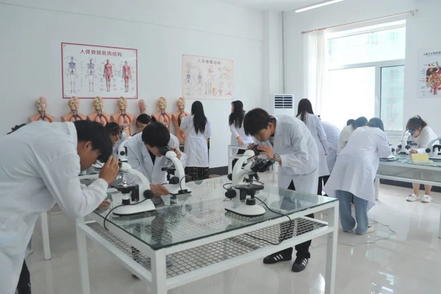 河北外国语学院国际医学院采用小班授课,学生有固定教室,各班都是智慧教室,配有智慧黑板,同时学校具备无线网络设施,为教师教学、学生学习提供便利条件。学校建有校内基础实训室,营造真实的实训环境,实训室全天对学生开放,强化技能训练。
